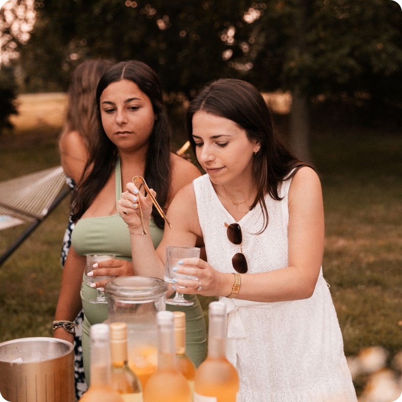 This happy hour was an intro to the entire weekend ahead, so it of course had to be very on theme. Food styling was one of my first loves, and I adored making these sunset colored cheeseboards. My bestie Dani Posner nailed the burlap pillow design – the perfect, understated bachelorette decor.