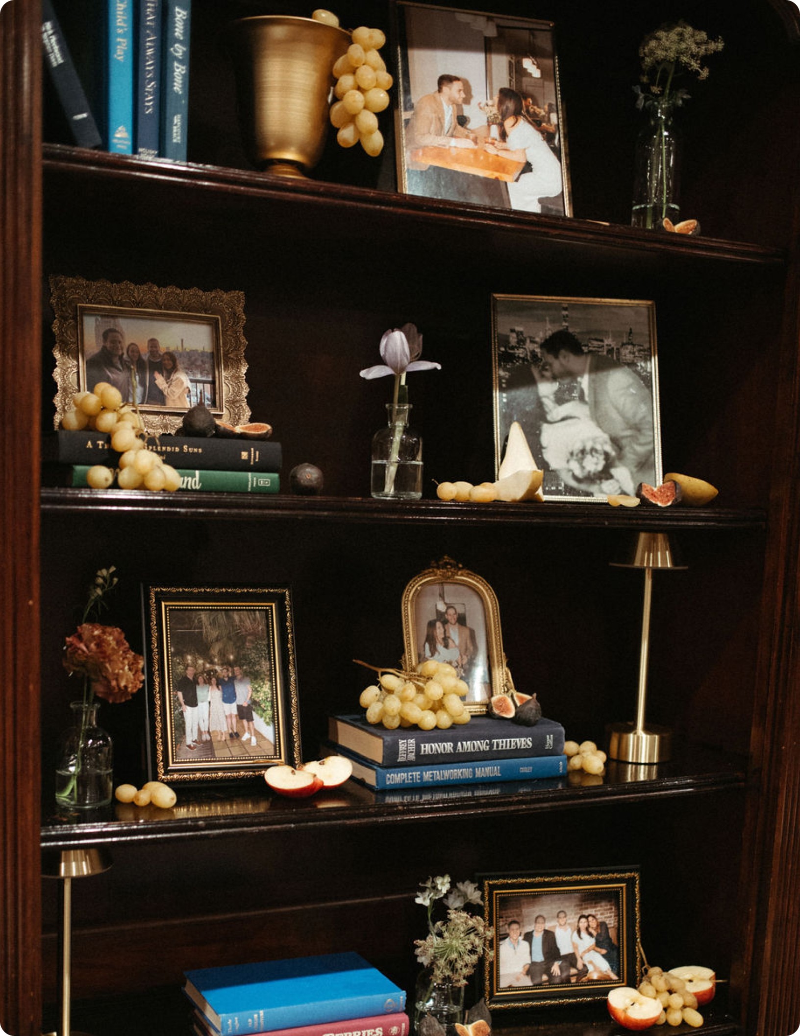 We turned the indoors into a garden wonderland with a floral box wall where everyone picked their names to find their seats. And since this lively wall was all about the people we adore, we set up another space to showcase photos of our loved ones who are no longer with us.