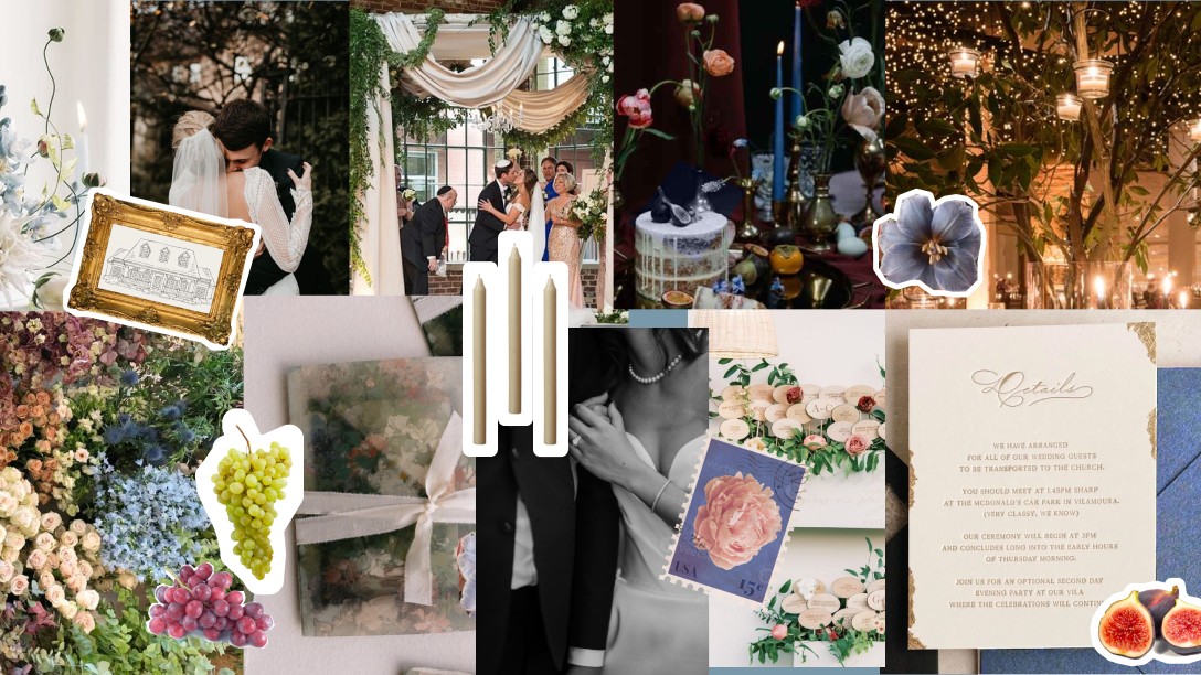 We aimed for our wedding brand to resonate across every aspect of our celebration. Whether it was the invitations, welcome bags, or the stationary and signage throughout the event, a distinct and cohesive theme prevailed. My vision was to seamlessly merge the outdoors with our indoor celebration, transforming the dance floor ceiling into a display adorned with greenery and twinkling lights. I envisioned a palette of florals, complemented by gold tones and subtle fruit accents woven throughout the ambiance. Every detail, chosen from the venue selection to the seating chart, was curated to breathe life into our brand identity.