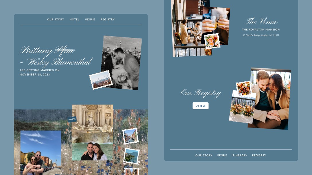 Recognizing that our wedding website served as the initial introduction to our special day for many guests, I took care to infuse it with key details and colors to establish the desired tone.