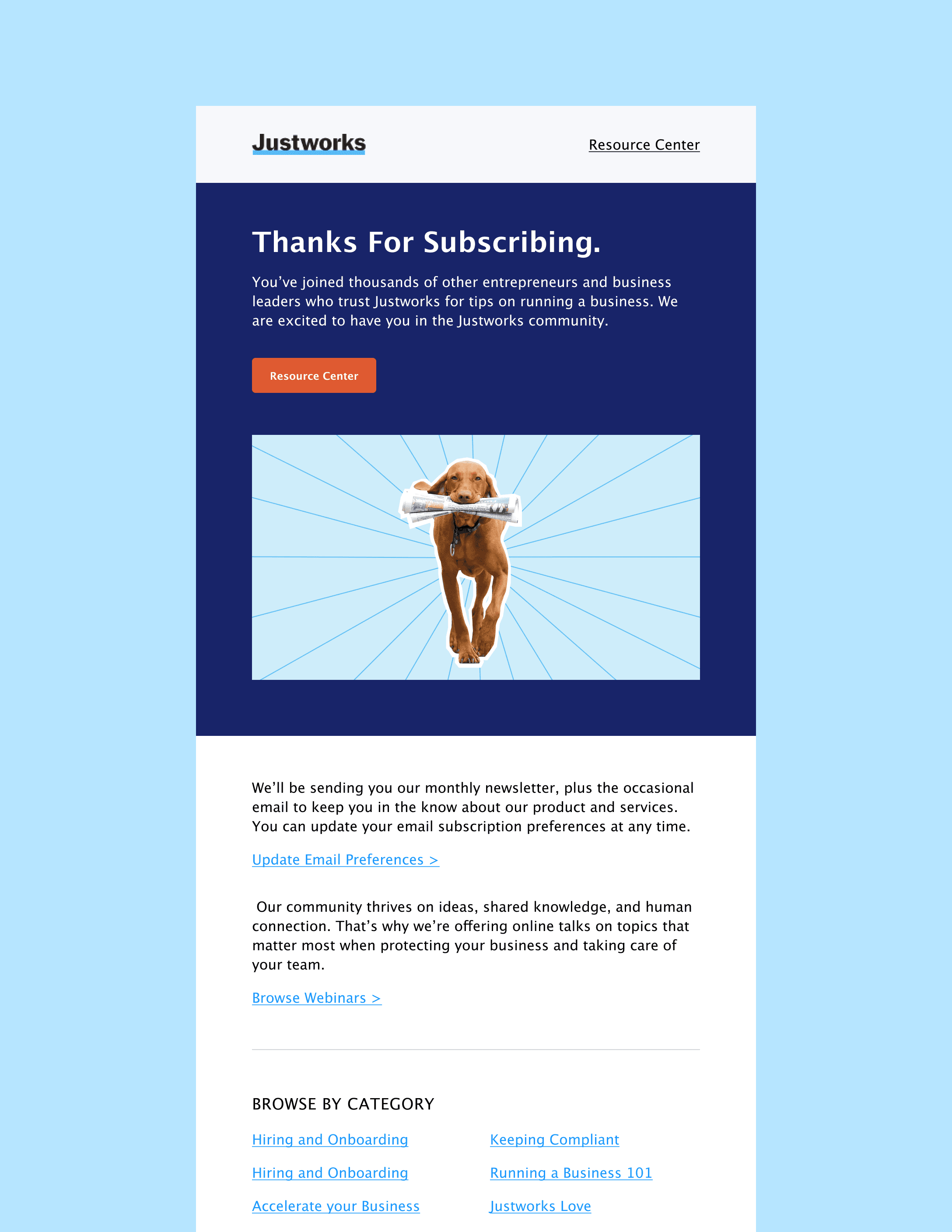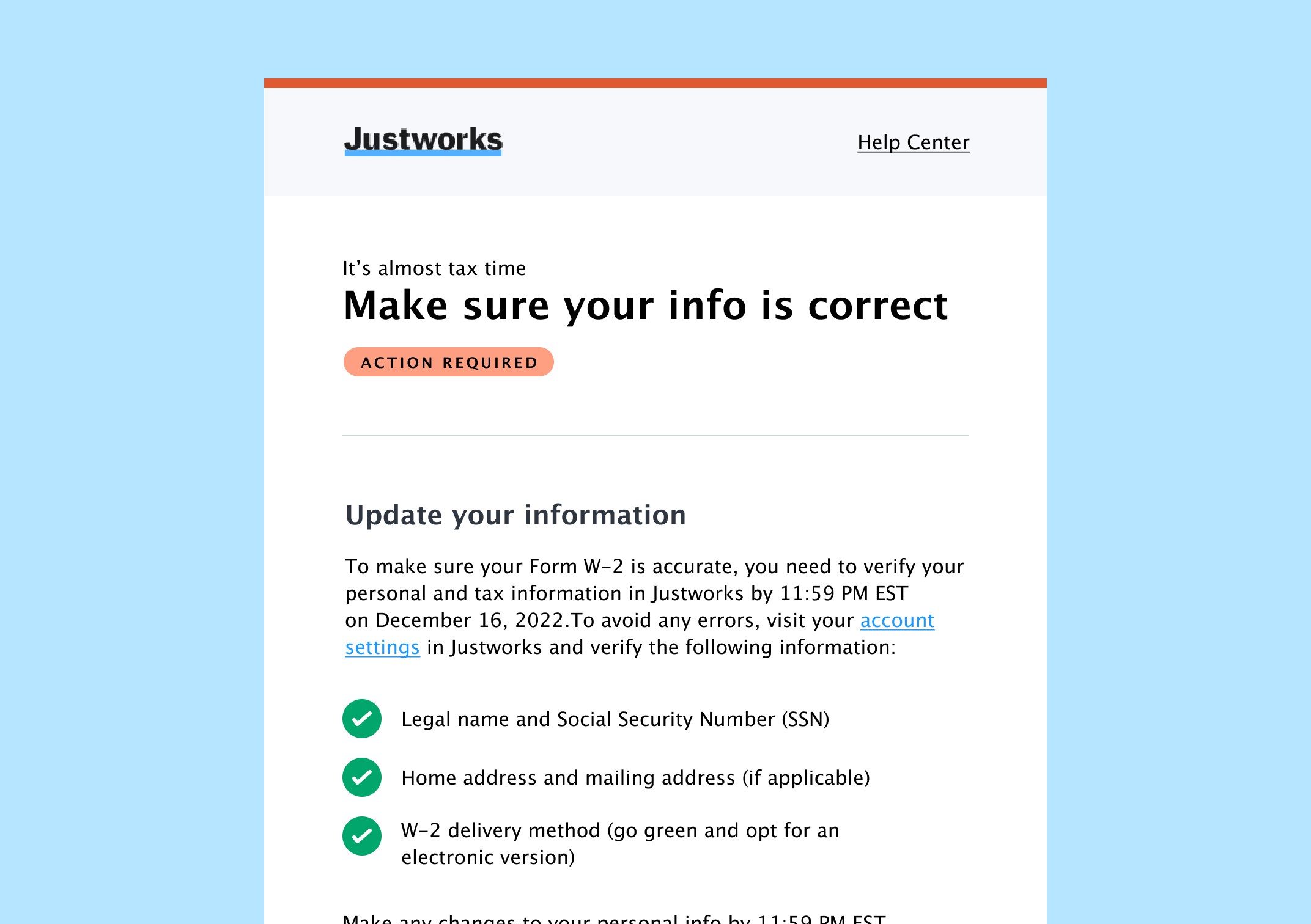 Justworks was sending out a high-volume of emails from our marketing and customer teams that were inconsistent, outdated, and overwhelming.