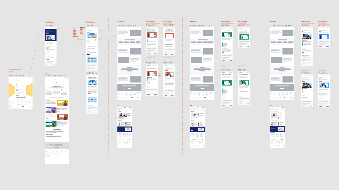 I spearheaded the entire process of creating lead nurture flows, beginning with brainstorming and identifying target user personas. I mapped out user flows and detailed every touchpoint in the campaign journey. Additionally, I took charge of designing and structuring landing pages to ensure consistency across all elements.