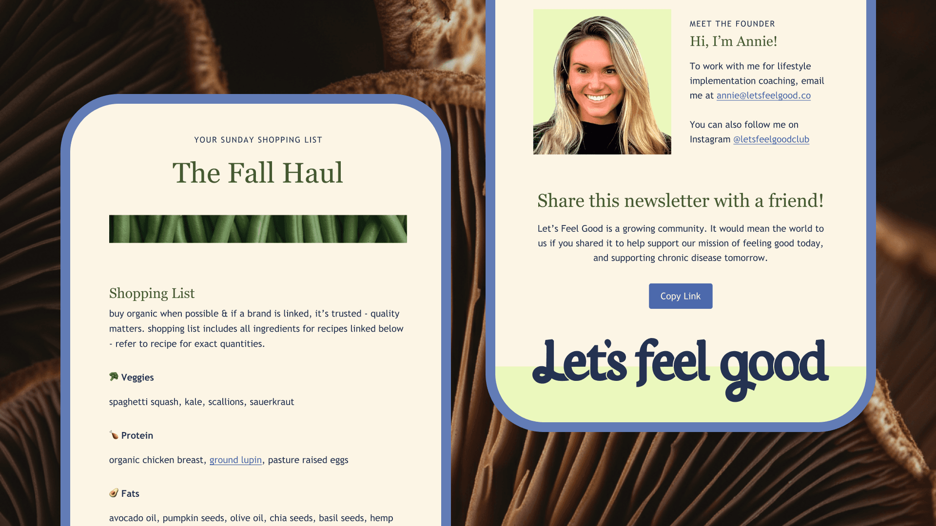 Let's Feel Good sends out weekly newsletters that focus on education, recipes, and product recommendations. I built a modular email system that can grow alongside Let's Feel Good.