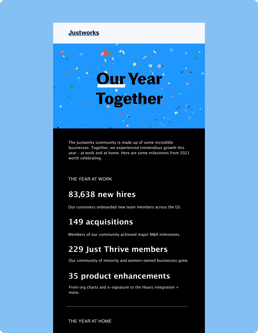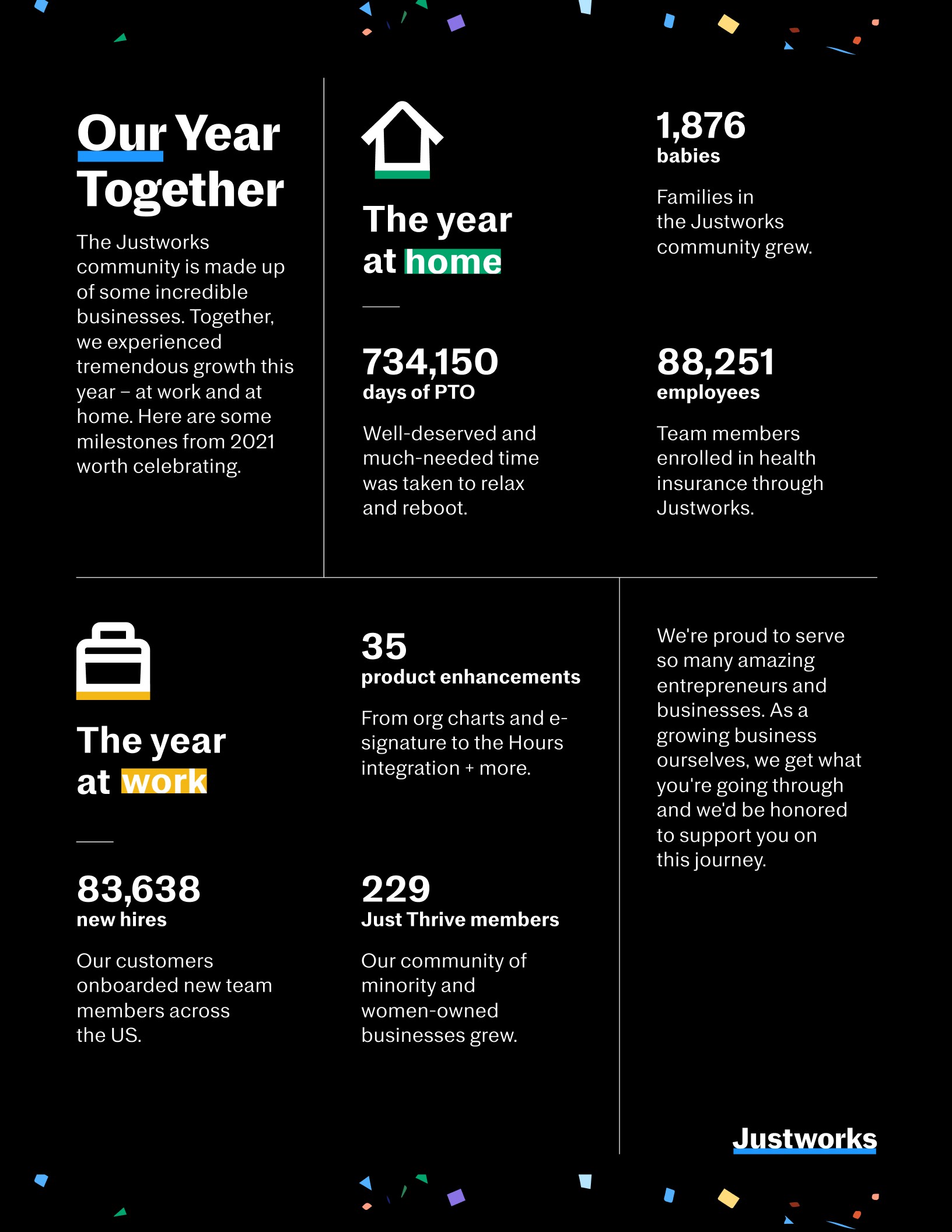 To conclude 2021, we wanted to to send an email of some noteworthy milestones and accomplishments within the Justworks community as a whole.